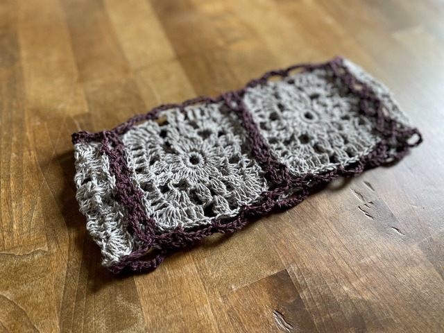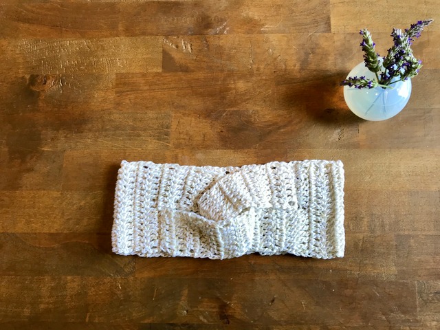 花モチーフのクロシェ ヘアターバン が編み上がりました。 コットンリネンのナチュラルな雰囲気が夏のヘアアレンジに一役かいそうなデザインです。 サイズ 10cm×48~56cm