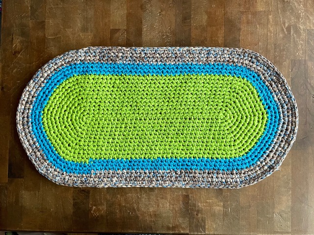 綿100%の生地を裂いて糸を作り、ひと編みひと編み丁寧に編み込んで作りました。 綿素材でお作りしているので、素足に心地良く馴染みます。お部屋のコーディネートにはもちろん、玄関やドアマットとしてもご使用いただけます。 サイズ たて39cm よこ77cm