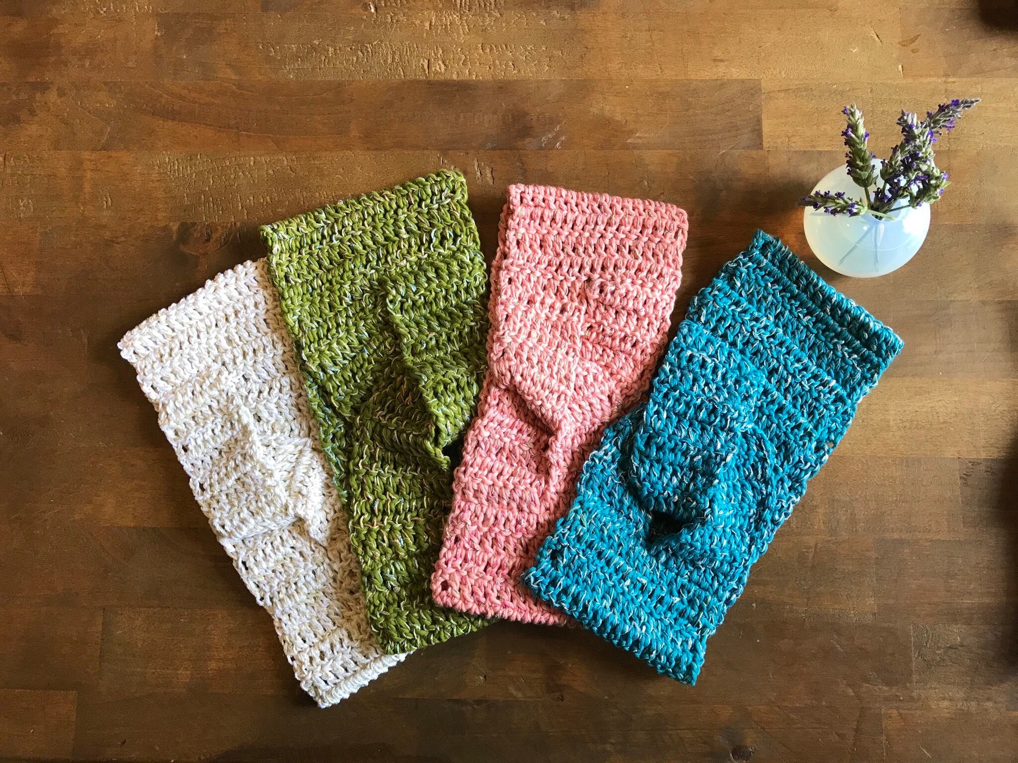 2色の糸とラメ糸を撚り合わせた糸を用いた深みのある色彩のヘアターバンは、外出にはもちろん、おうちでのくつろぎのアイテムとしてもお洒落に演出してくれそうですね٩(^‿^)۶
