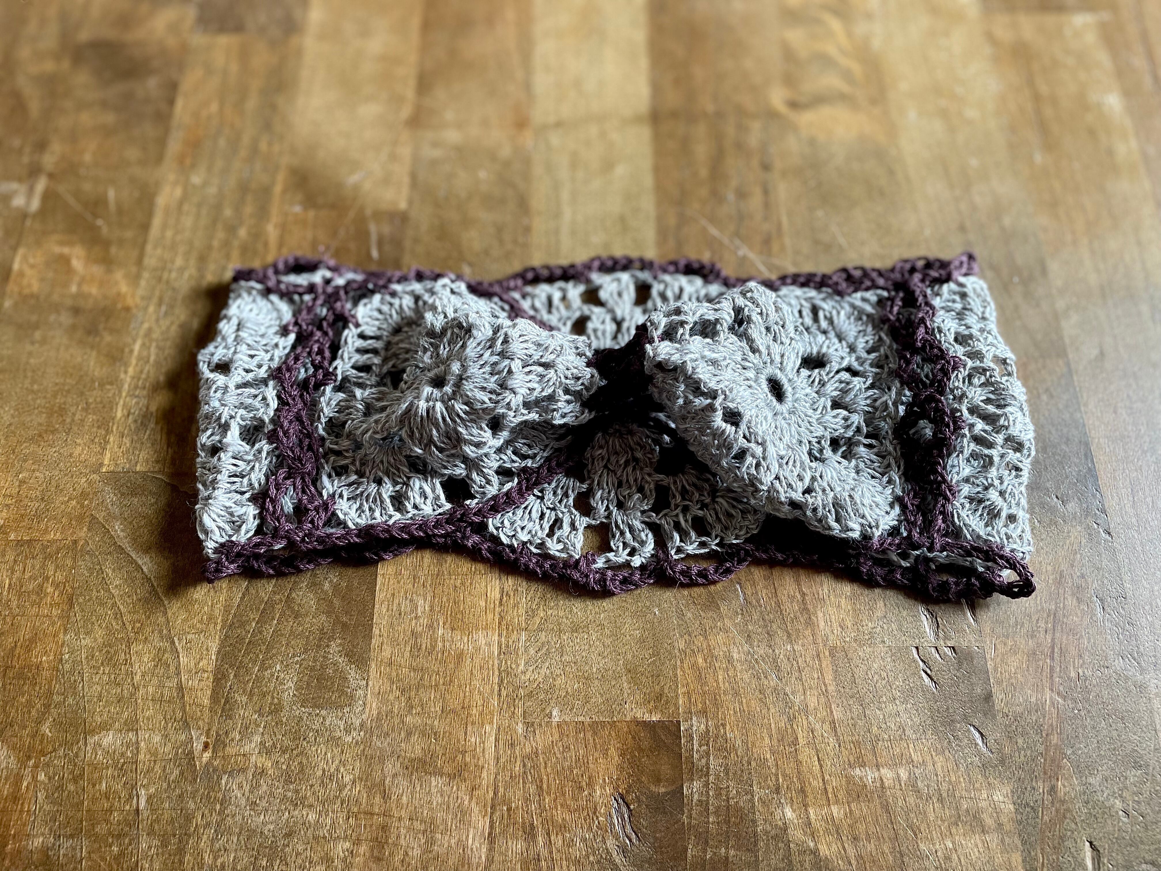 花モチーフのクロシェ ヘアターバン が編み上がりました。