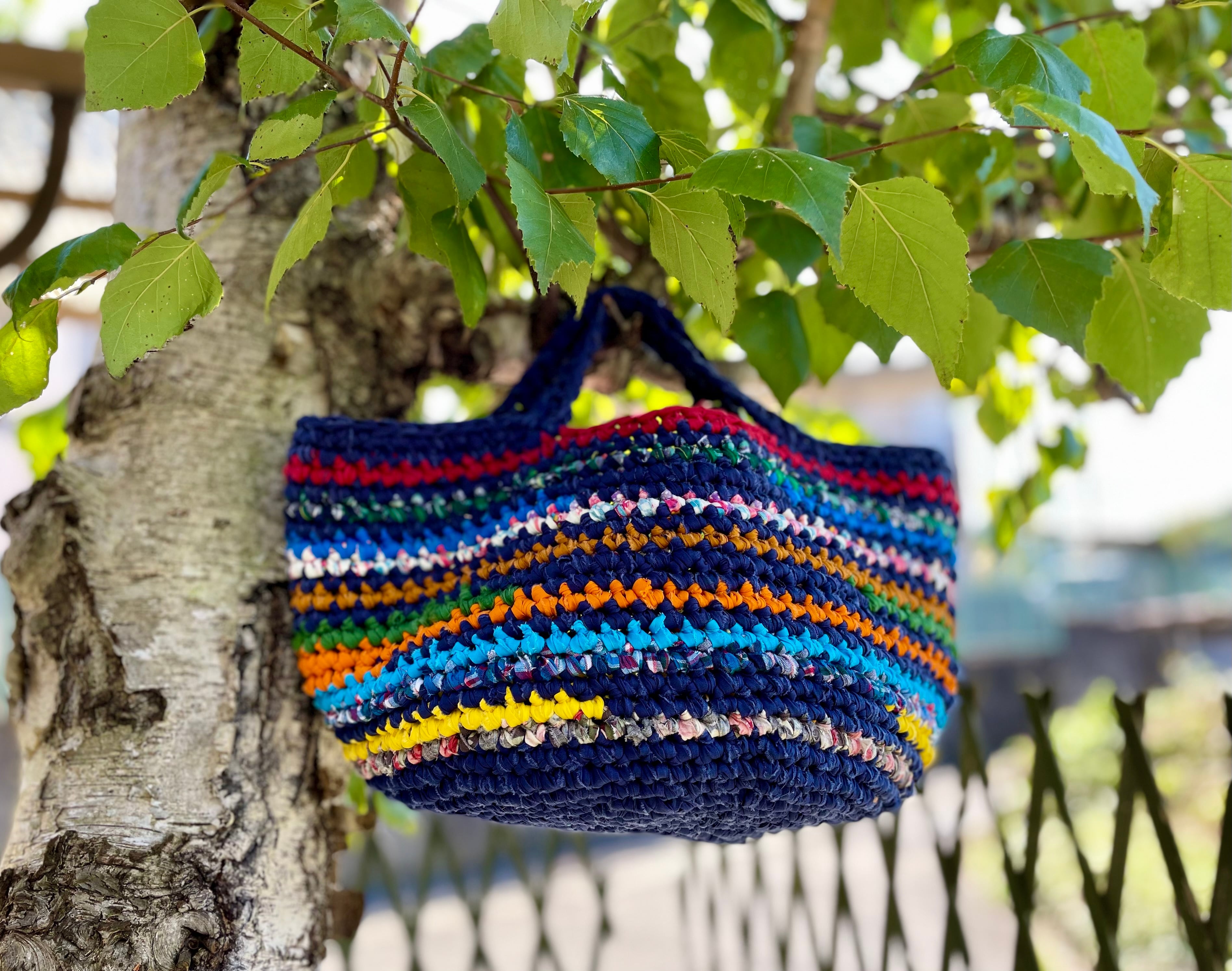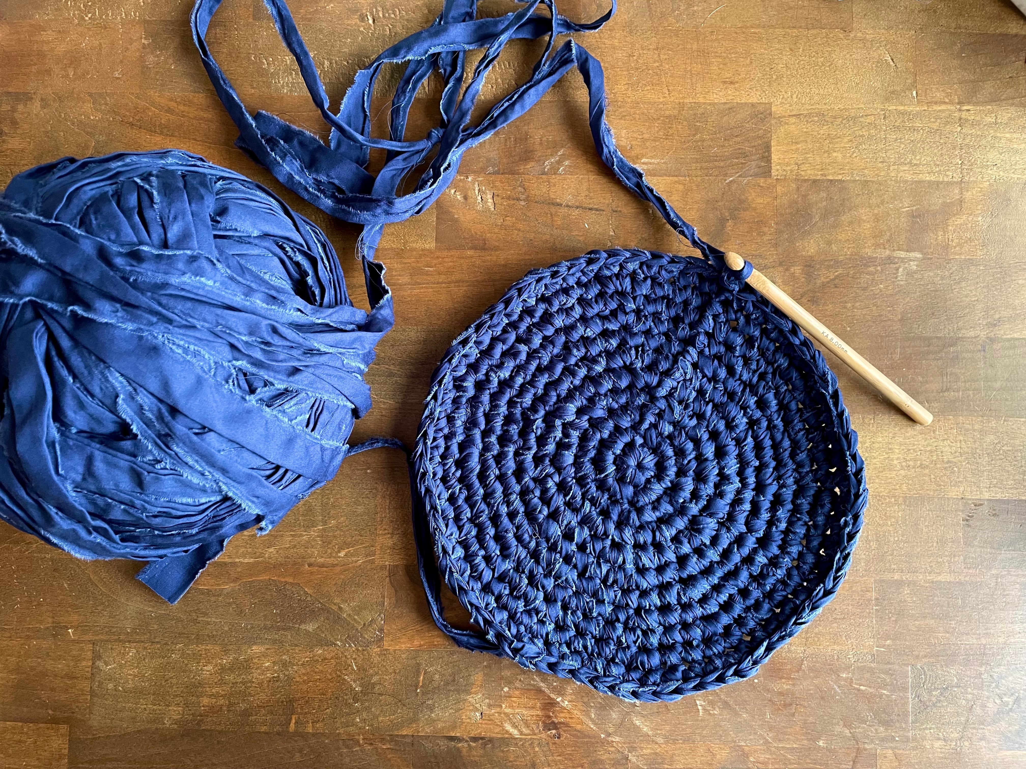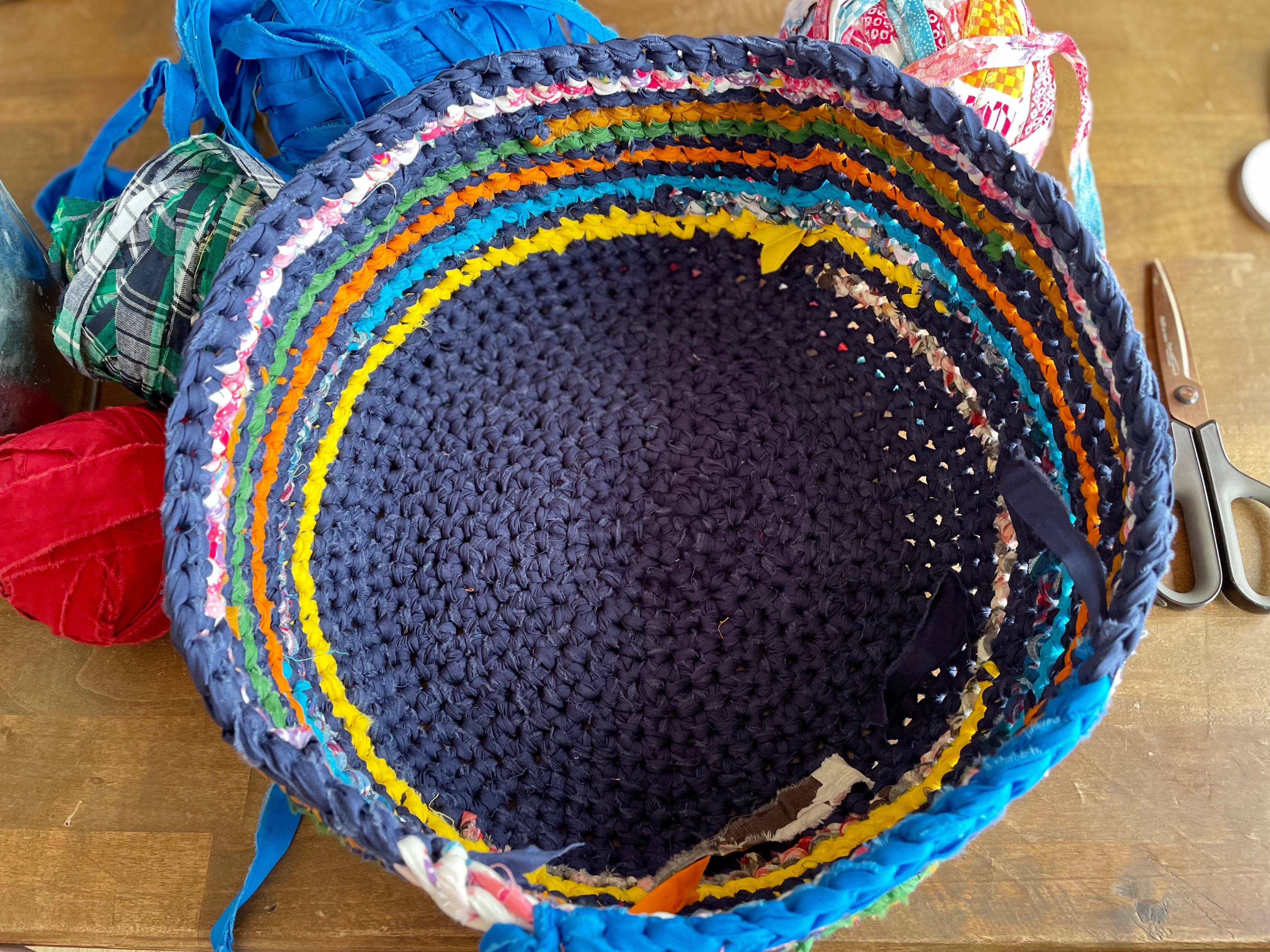 コットンの布を裂いて糸を作り、13色のカラーを繋ぎ合わせてバスケットを作りました。